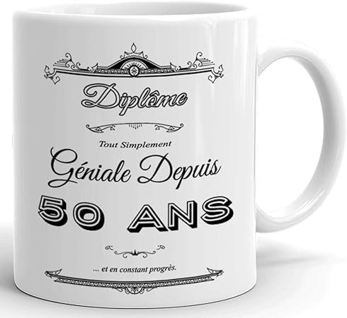 Cadeau Anniversaire Femme 50 Ans Tasse Mug Diplome Tout Simplement Geniale Depuis 50 Ans Original Personnalise Amazon Fr Cuisine Maison