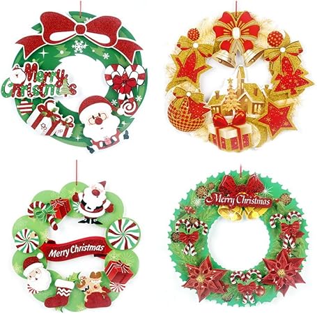 Couronne Noel Papier Oulii 3d Couronne Couronne Porte De Noel Pour Decoration A Suspendre Ou Autocollant 4pcs Amazon Fr Cuisine Maison