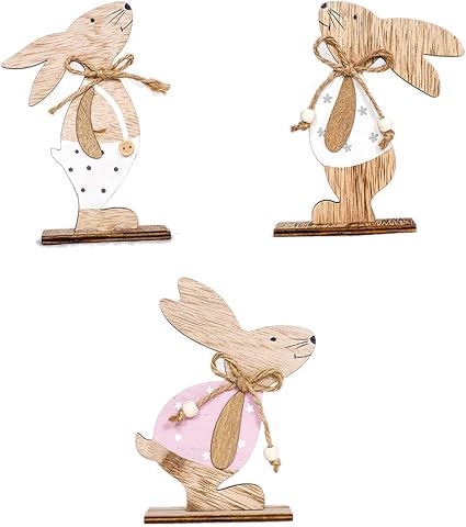 Ruiting Lapin De Paques Lapin Paques En Bois Decor Ornement De Lapin En Bois Decoration Paques 3pcs Amazon Fr Cuisine Maison