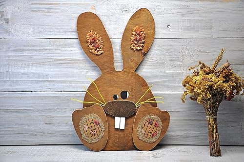 Le Lapin De Paques En Bois Decorations Rustique De Paques Pour La Porte D Entree Decoration Exterieur Decos Et Accessoires De Paques Amazon Fr Handmade