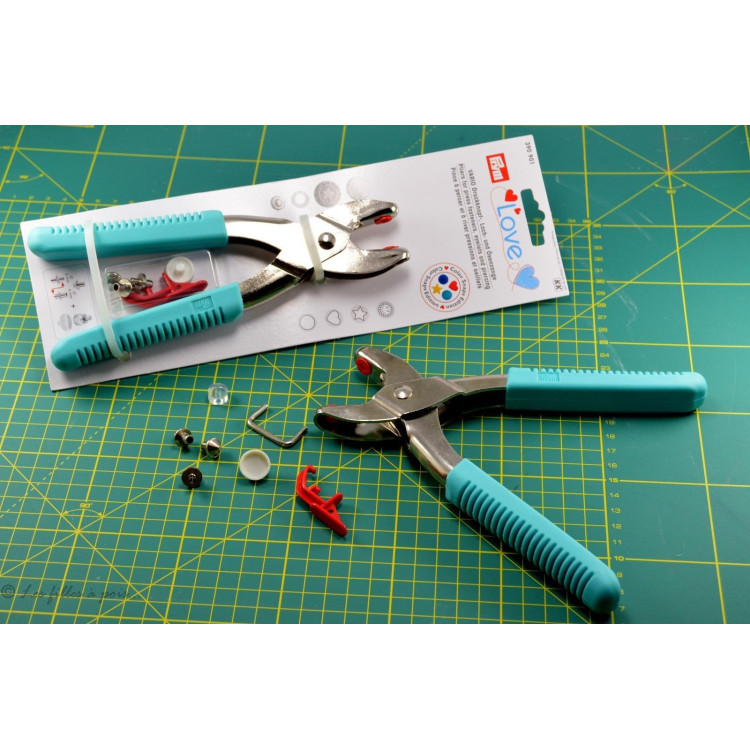 La pince Vario Love de Prym Love est une pince de grande qualité, permettant de poser facilement et sans effort les pressions, oeillets et rivets Grâce au nouvel adaptateur inclus, vous pourrez aussi poser les boutons pressions colorées Color Snap (rondes, étoiles ou coeurs) Inclus 1 pince Vario Love,. Mallette Garnie avec Pince Vario Prym pour fixer les Pressions et Boutons Pressions Détails de la mallette 1 Pince à œillets et pression vendu avec les embouts et outils de perçage et à rivets ( matrices ) 10 boutons pressions 15mm argent pour anorak 10 boutons pressions 15mm bruni pour anorak. Matrices à retirer "Color Snaps" Prym Contenu du kit Un accessoire en métal et un en caoutchouc dur pour le côté du couvercle du bouton pression;.