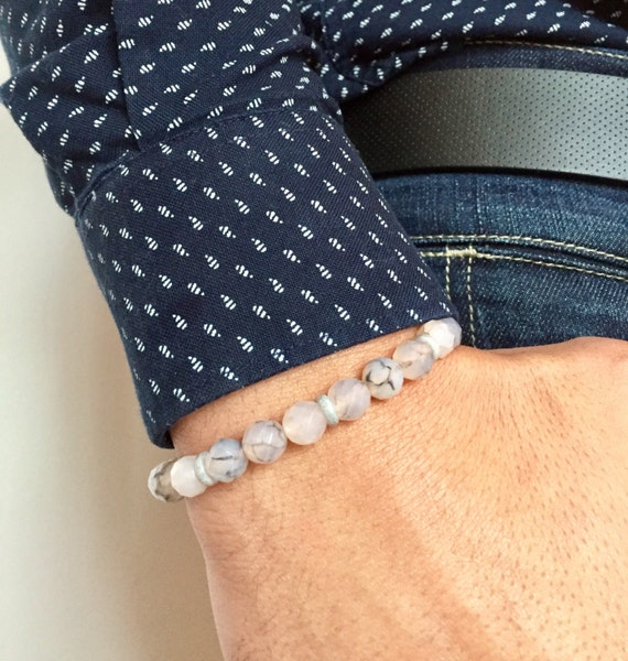 Bracelet Homme Pierre Larimar Pierre D Agate Craquelee Et Etsy Bracelets Beaded Bracelets Onyx