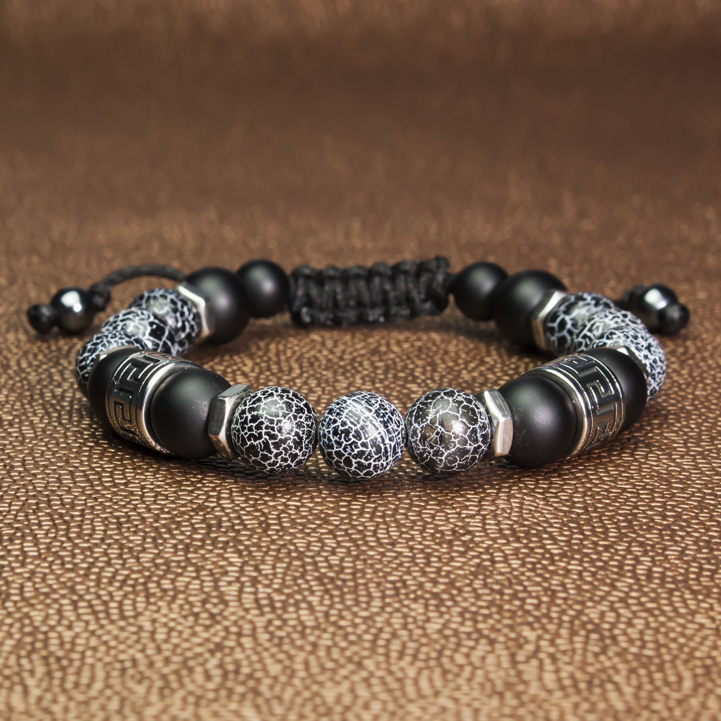 High End Bracelet Men Woman Pearls 8mm Pierre Agate Black Etsy