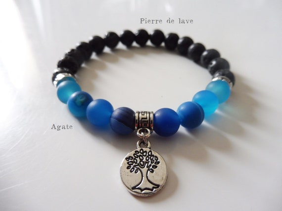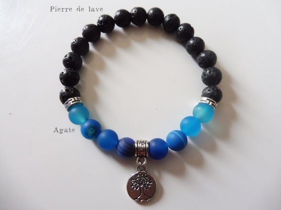 Unisex Bracelet Lava Stone And Blue Agate With Tree Of Life Etsy