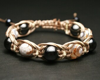 Bracelet Homme Ethnique Pierre Agate Marron Et Perles Etsy Bracelet Homme Bracelet Ethnique Bracelet Pierre