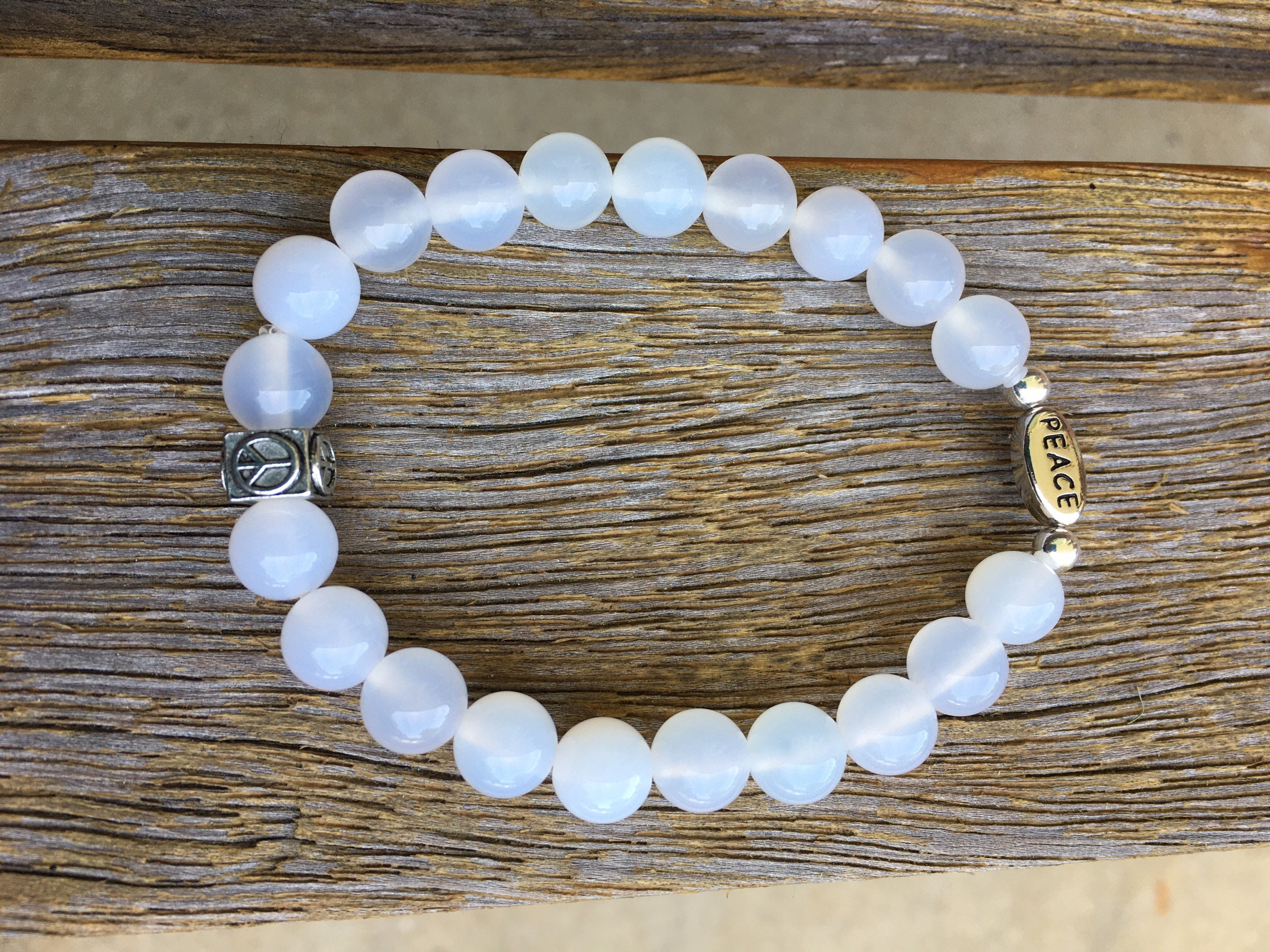 Let S Try Peace White Agate Bracelet