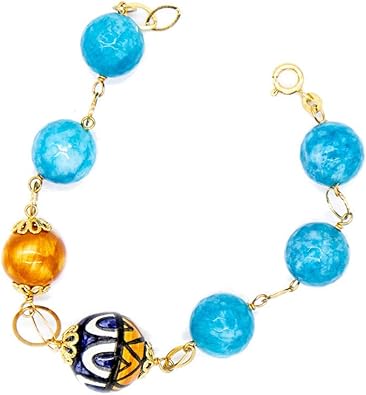 Amazonfr Agate Bracelet Agate Bleue Et Spheres En Ceramique Caltagiron 19