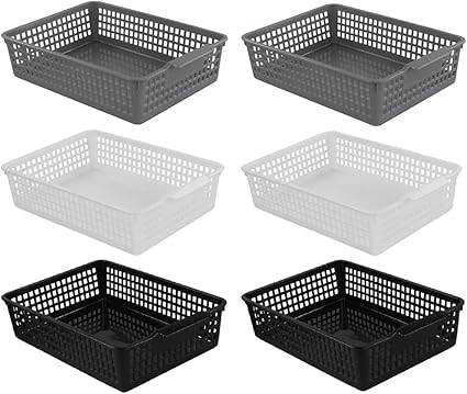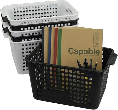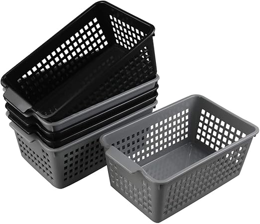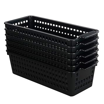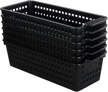 Cadine 6 Pack Plastique Rectangulaire Panier De Rangement Panier De Rangement En Plastique De Bureau Noir Boites De Rangement Ouvertes Cuisine Maison