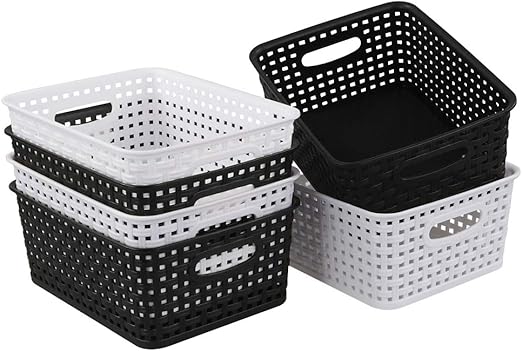 Noir Et Blanc Hokky Panier De Rangement Rectangulaire Plastique 6 Paniers Cuisine Maison Paniers Pour Etageres