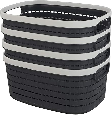 Paniers Paniers Et Boites De Rangement Lot De 4 Hokky Rectangulaire Plastique Panier De Rangement Noir Et Blanc Pisteursdetoiles Com