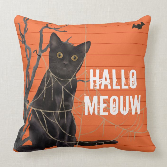 Black Cat Branch And A Bat Orange Black Halloween Throw Pillow Zazzle Com