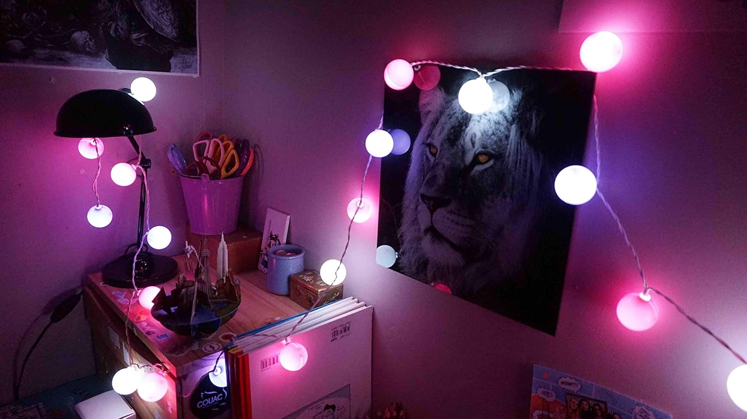 Guirlande Lumineuse Interieure I 30 Balles Multicolores Couleur Rose Bleu Violet I Led Blanc Chaud I Longueur De 3m50 I Alimentation Usb I Deco Chambre Ado Enfant Salon Elume Amazon Fr Luminaires