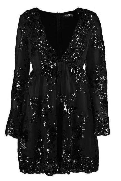 Robe Patineuse En Tulle A Manches Longues Et Paillettes Noir 38 Noir From Boohoo On 21 Buttons