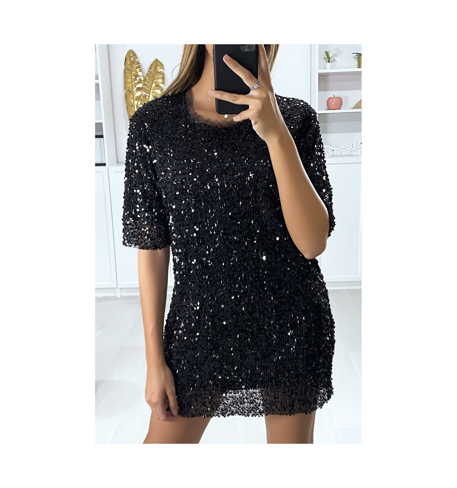 Robe Courte A Paillettes Noir Et Or Vinted