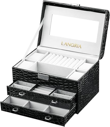 Langria Coffret A Bijoux Rectangulaire Faux Cuir Effet Croco Interieur Veloute Et Miroir Verrouillable A Clef Compartiments Amovibles Pour Les Bijoux Accessoires Maquillage Noir Amazon Fr Bijoux