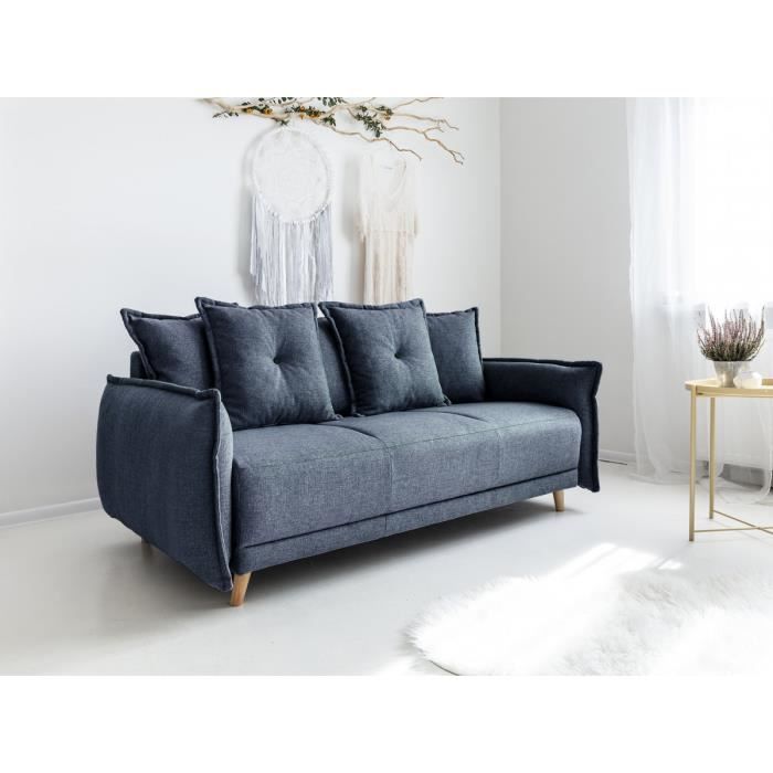 Canape 3 Places Fixe Lena Bleu Pieds Deco Grands Coussins Deco Capitonnes Accoudoirs Coussins Achat Vente Canape Sofa Divan Soldes Sur Cdiscount Des Le Janvier Cdiscount