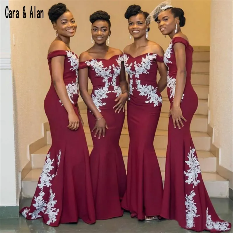 Nigerian Longues Robes De Demoiselle D Honneur Bordeaux Avec Dentelle Blanche 19 Hors De L Epaule Robes De Mariee Africaines Robe De Demoiselle D Honneur Aliexpress