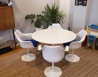 ONE Tulip Side End table designed by Eero Saarinen fomr Knoll. Eero Saarinen Knoll Oval Tulip Dining Table, White Laminate Top (Pickup in NJ) $1, Local Pickup Watch VTG MCM 60s ORIGINAL TULIP TABLE & 4 CHAIRS DINING SET SAARINEN KNOLL EAMES ERA $1, Local Pickup or Best Offer Watch Eero Saarinen 54” Tulip Table by Knoll $2, Local Pickup. Authentic Tulip table designed by Eero Saarinen for Knoll in 1956 Round 42" laminate top on white enameled base.