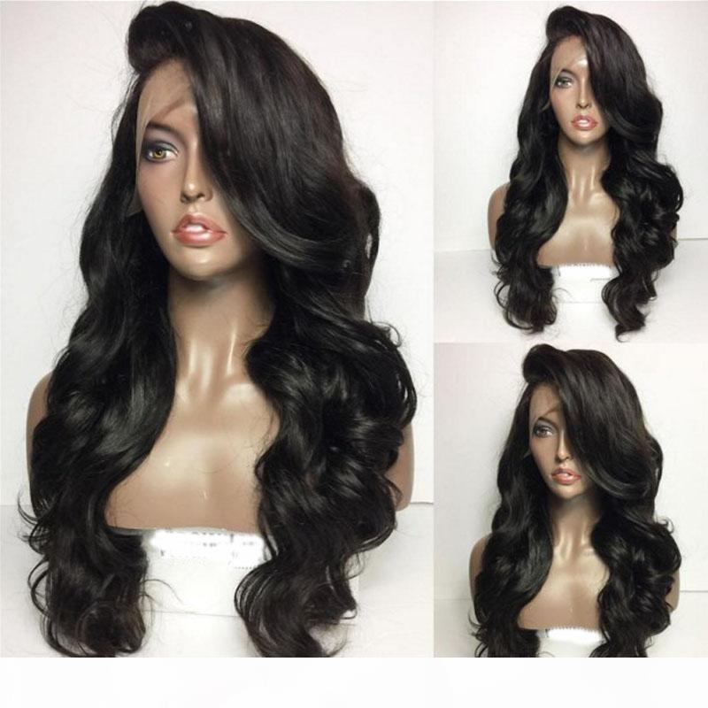 Acheter Chaude Populaire Naturel Doux Noir Boucles Ondules Longue Perruques Pas Cher Avec Des Cheveux De Bebe Resistant A La Chaleur Sans Colle Synthetique Perruques Avant De Lacet Pour Femmes Noires De