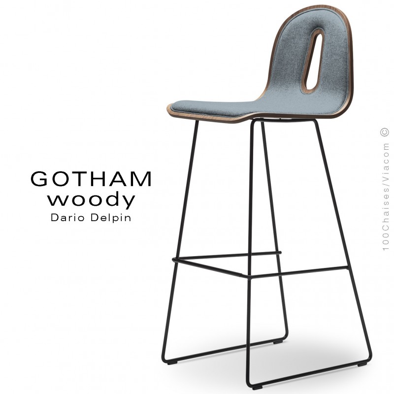 Tabouret De Bar Design Gotham Woody Sl Sg 80 I Pietement Luge Acier Assise Et Dossier Coque Bois Habillage Tissu