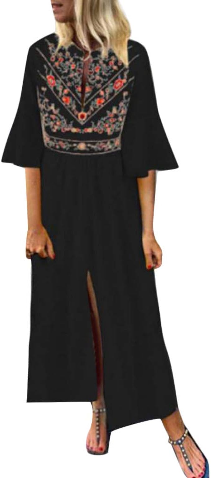 Holitie Vetements Robe Longue Pas Cher Femme Robe Vintage Femmes Robe Maxi Imprimee A Manches Courtes Manches Evasees Robe Col Rond Amazon Fr Vetements Et Accessoires
