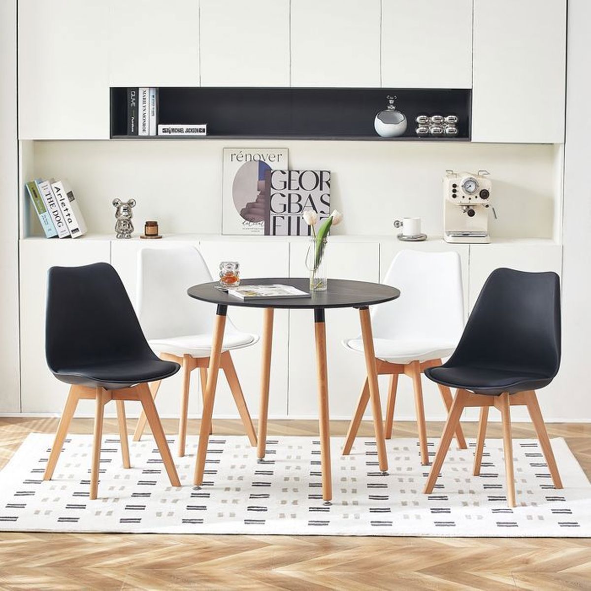 Table Ronde Tulipe 100cm Avec Plateau Couleur Bois Et Pied Noir Melo