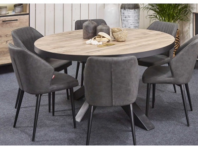 Table Ronde Design Avec Rallonge Plateau Bois Pied Metal Gris Steel