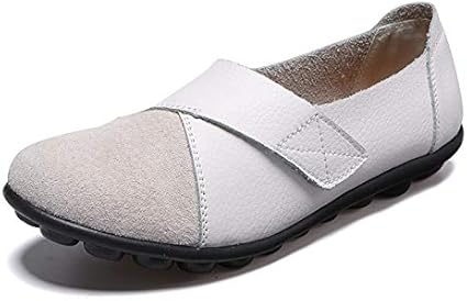 Chaussures Plates Femme Vintage Original Round Toe Occasionnels Ferme Epissure Cuir Naturel Doux Confortable Flaneuses En Caoutchouc Souple Chaussures Chaussures Bateau Dames Blanches Chaussures Pl Amazon Fr Sports Et Loisirs