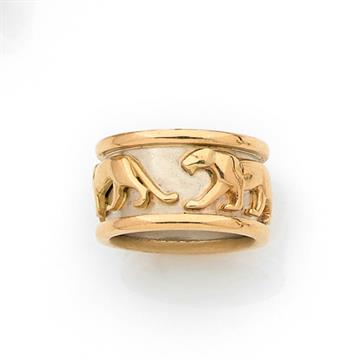 Cartier Bague Pharaon En Or Jaune Agrementee D Une Course De Pantheres Sur Fond D Or Gris S