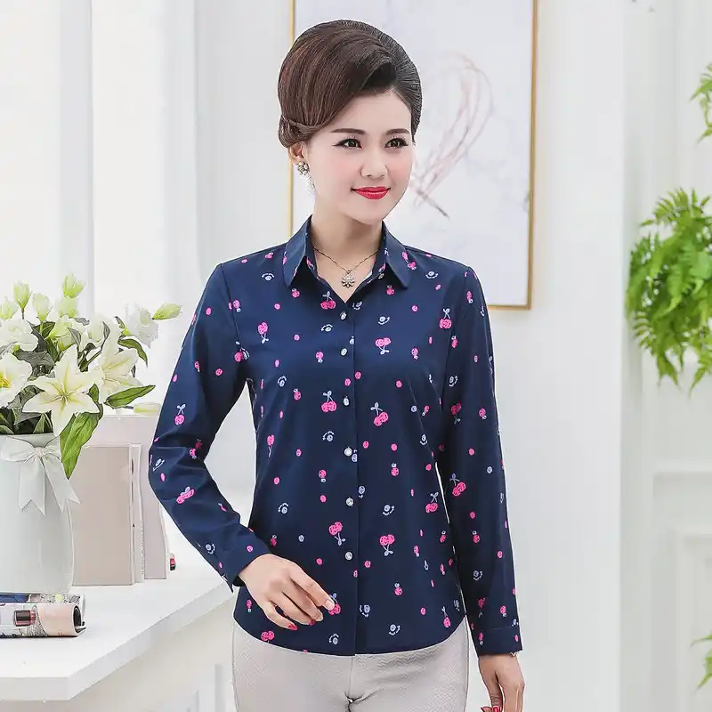 Chemise A Fleurs Femmes Automne Rose Vert Bleu Marine Couverture En Coton Moyen Age Femme Decontracte Col Rabattu A Manches Longues Cardiagn Chemises Aliexpress
