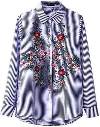 Vovotrade Femmes Chemise A Fleurs En Coton A Manches Longues A Rayures Stand Col Size S Bleu Amazon Fr Vetements Et Accessoires