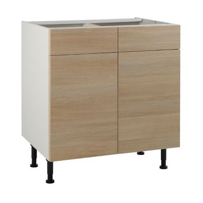 Meuble De Cuisine Unik Chene Naturel Facades 2 Portes 2 Tiroirs Caisson Bas L 80 Cm Castorama