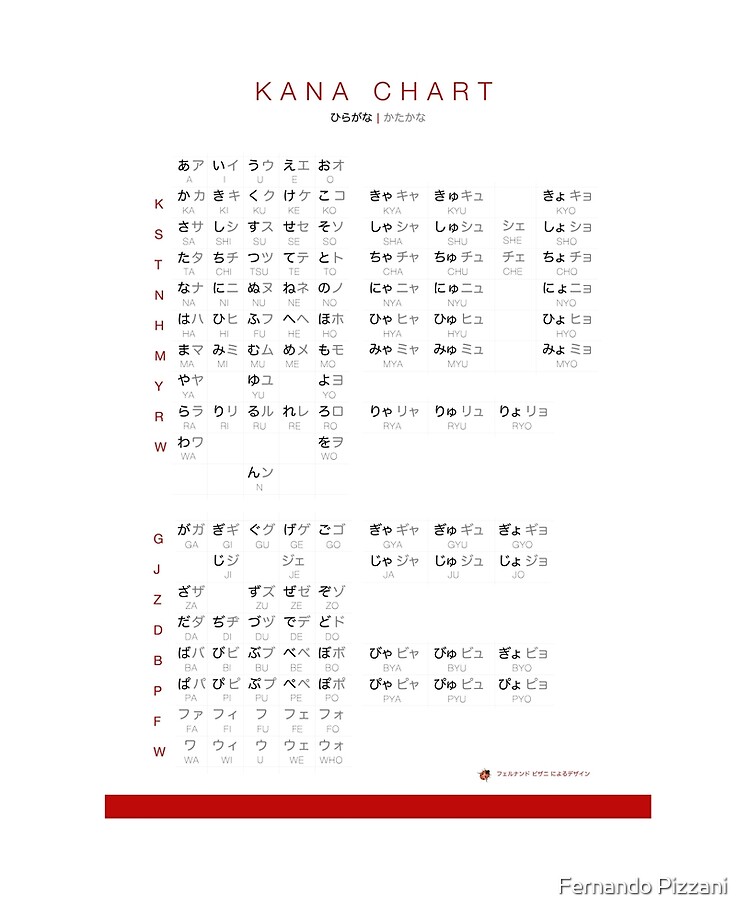 Around the 9th century, the Japanese developed their own writing system based on syllables hiragana and katakana (together kana)Of the two kana systems, hiragana is more cursive, while katakana characters are more angular Hiragana and katakana each consist of 46 signs which originally were kanji but were simplified over the centuries When looking at a Japanese text, one can clearly. Hiragana and Katakana are both referred to as the Kana symbols Hiragana is used to write native Japanese words or to spell words or part of words that don’t have their own Kanji symbol Kanji symbols are the busy looking characters derived from Chinese Katakana is used mainly to write foreign words that have made their way into Japanese. Tableau Chaque case contient à gauche le hiragana (écriture syllabique cursive) et à droite le katakana (écriture syllabique « carrée », principalement pour les emprunts, transcriptions étrangères et toponymes), et audessus la romanisation rōmaji selon la méthode Hepburn.