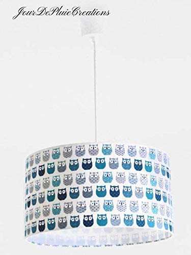 Lustre Suspension Abat Jour Hiboux Bleus Luminaire Diametre Personnalise Idee Cadeau Anniversaire Noel Decoration Chambre Bebe Enfant Amazon Fr Handmade