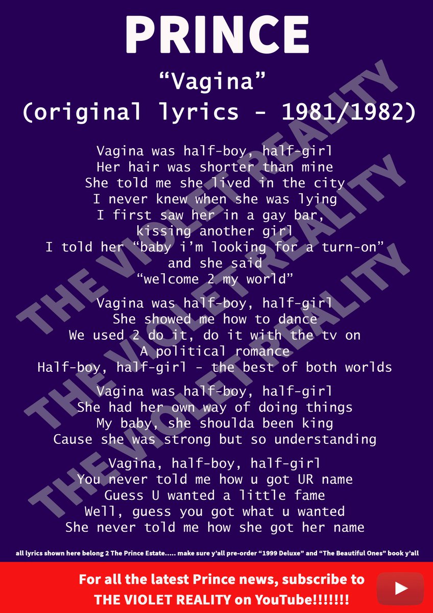 Casey Rain Aka S Endz I Promised Y All Exclusive Prince Info And Here It Is For The First Time Here Are Prince S Original Lyrics To The Unreleased Song Vagina Coming Out