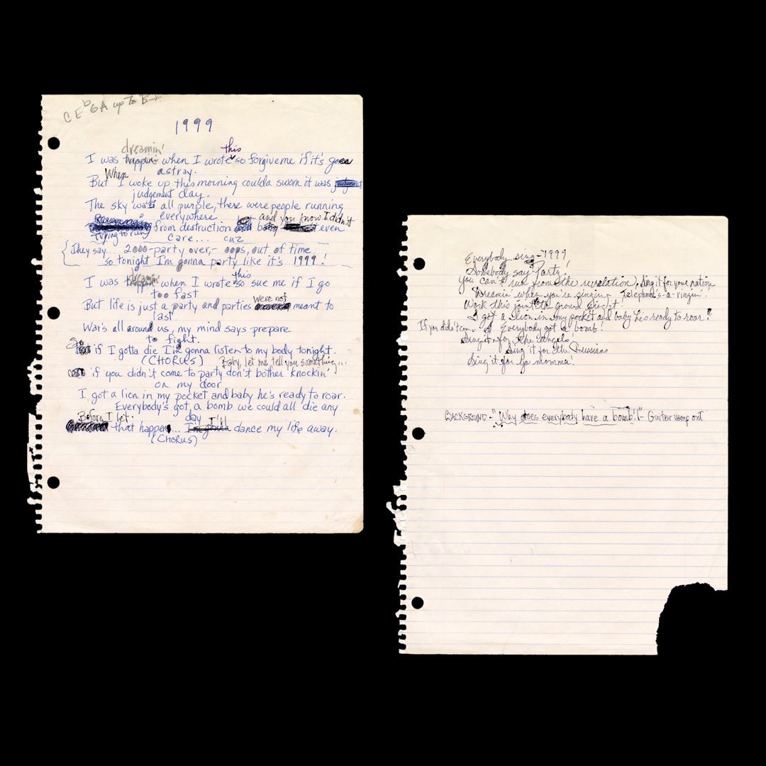 Prince The Sky Was All Purple There Were People Runnin Everywhere Tryin To Run From The Destruction You Know I Didn T Even Care The Handwritten Lyrics From 1999 Taken From