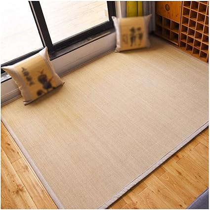 Jiajuan Fibres Naturelles Bambou Tresse Epaissir Tapis Antiderapant Doux Zone Tapis Rectangle Sol Tapis Avec Frontiere De Toile De Jute Color B 10mm Size 90x0cm Amazon Fr Cuisine Maison