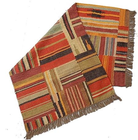 Grand Tapis De Sol Boheme Ethnique En Toile De Jute Fait A La Main 5 X 0 9 M Amazon Fr Cuisine Maison