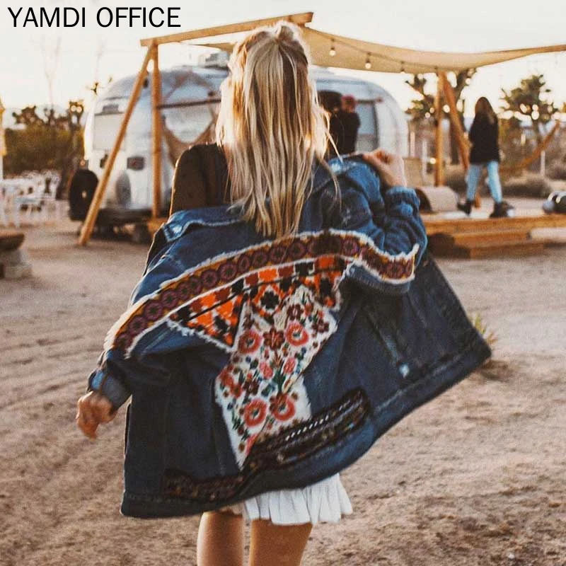 Yamdi Femmes Automne Hiver Veste 19 Vintage Boheme Denim Broderie Femme Ladise Vetements D Exterieur De Cardigan Imprimer Floral Chic Manteau Aliexpress
