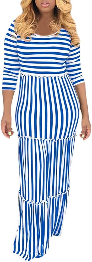 Robe De Plage Femme Boheme Hiver New Robe Longue Femme Casual Slim Manches Longue Lache Boho A Rayures Dress Decontractee Chic Maxi Robe Kaftan De Cocktail Jupe Vacances Vetements Grande Taille Amazon Fr