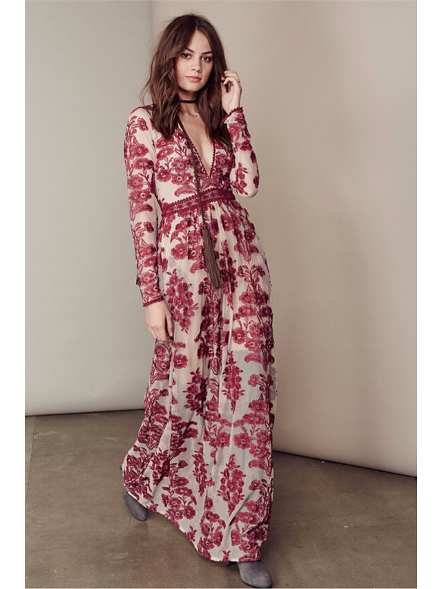 Honestyi Robe Maxi Femme Automne Et Hiver Tuniques Grande Taille Manches Longues Robes Loose Col V Casual Dress 19 Nouveau Boheme Chic Imprimee Robe De Soiree Cocktail Vetements Pas Cher Amazon Fr Vetements