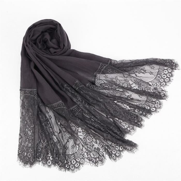 Foulard Femme No5042 Ardoise 1 Pc Populaire Dentelle Bords Echarpe Hijab Femme Plaine Maxi Chale Enveloppement Fleur Blanc Achat Vente Echarpe Foulard Cdiscount