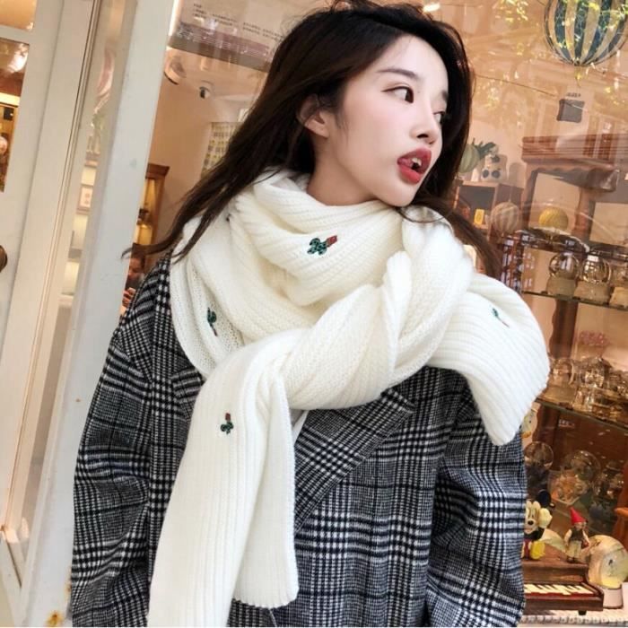 Foulard Femme Nouvelle Arrivee Epaissir Chaud Longue Echarpe En Laine Mignonne Broderie Automne Hiver Echarpe En Tricot Blanc Blanc Achat Vente Echarpe Foulard Soldes Sur Cdiscount Des Le Janvier Cdiscount