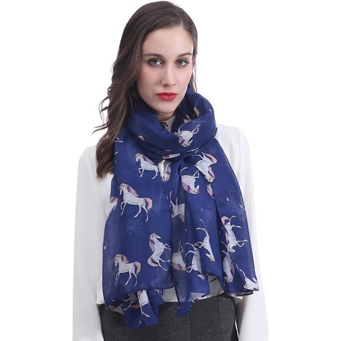 Echarpe Chale Foulard Femme Bufanda Imprime Licornes Bleu Bleu Achat Vente Echarpe Foulard Cdiscount