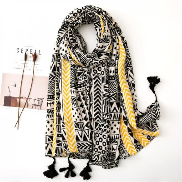 Foulard Femme No6357 Motif Geometrique Viscose Chale Echarpe Femmes Coton Chaud Gland Echarpes Noir Blanc Jaune Raye Doux Hijab Achat Vente Echarpe Foulard Soldes Sur Cdiscount Des Le Janvier Cdiscount