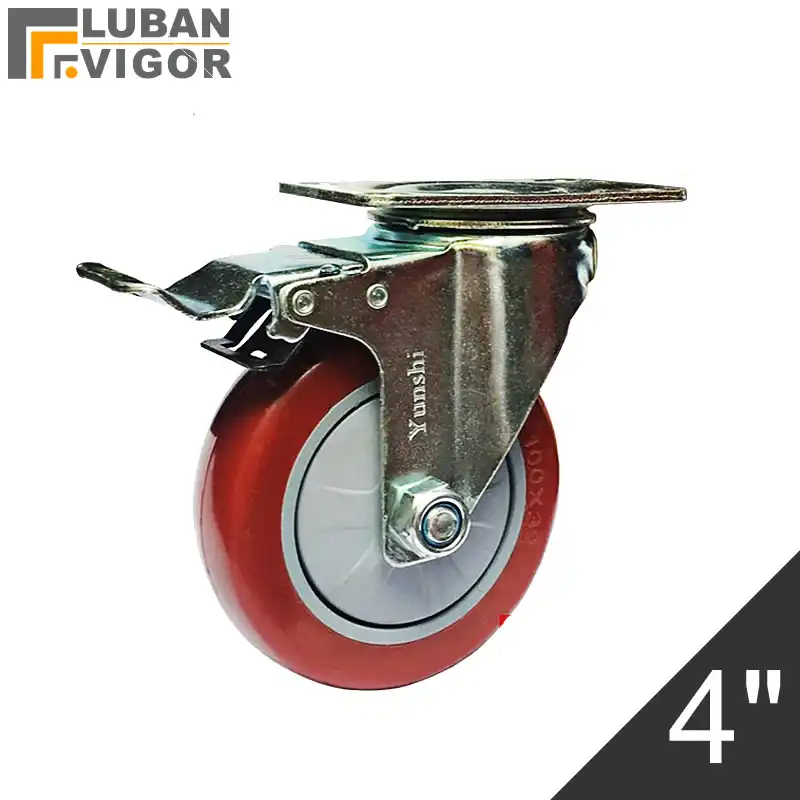 Roues Roulettes En Pvc Rouge De 4 Pouces Roues A Roulettes Avec Frein Arbre Fixe Portables Silencieux Roulement 130kg Industriels Aliexpress