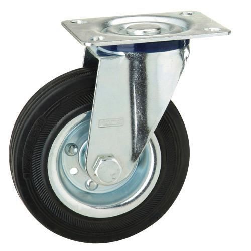 Roulette Pivotante A Platine Roue Caoutchouc Noire O50 Charge 30kg Fournitures Industrielles