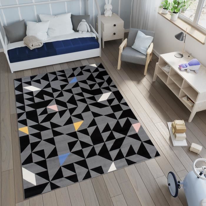 Tapiso Tapis De Chambre Enfant Bebe Ado Moderne Geometrique Gris Noir Blanc Jeu Doux Resistant 160 X 225 Cm Achat Vente Tapis Cdiscount