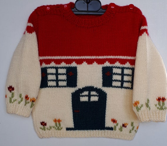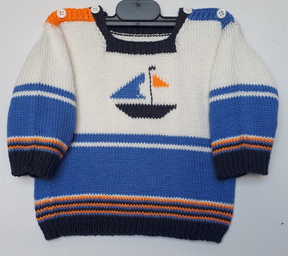 Pull Coton Tricot Fait Main Pour Bebe 6 Mois Motif Bateau Etsy