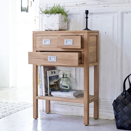 Petite Console D Entree En Bois Gris 3 Tiroirs Collection Tana
